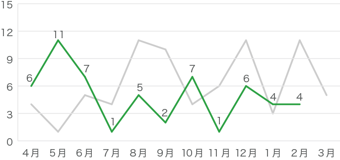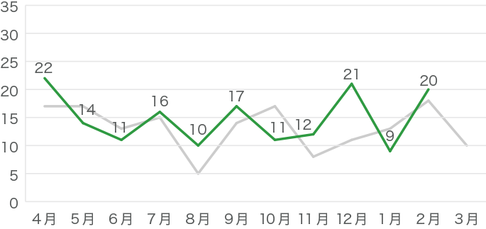 昨年のデータはグレーの線で示しています。